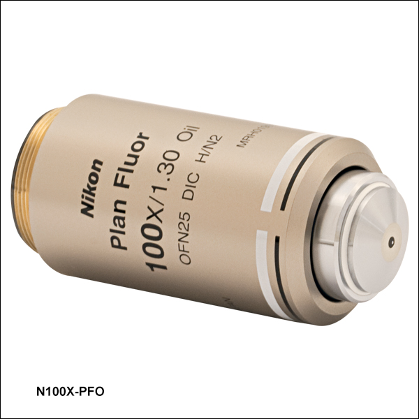 この対物レンズは100倍の倍率で、透過率が高く(特にUV域で顕著)、視野に渡って平坦な画像が得られます。そのため、レーザ走査顕微鏡技術での使用に適しています。 DIC顕微鏡用に設計されていますが、 明視野顕微鏡や偏光顕微鏡にもお使いいただけます。また、この対物レンズはNA値が高いので、 光ピンセット用途にもお使いいただけます。M25 x 0.75ネジを使用していますが、M25 x 0.75ネジアダプタを使用して他のネジ規格にご使用いただくことも可能です。