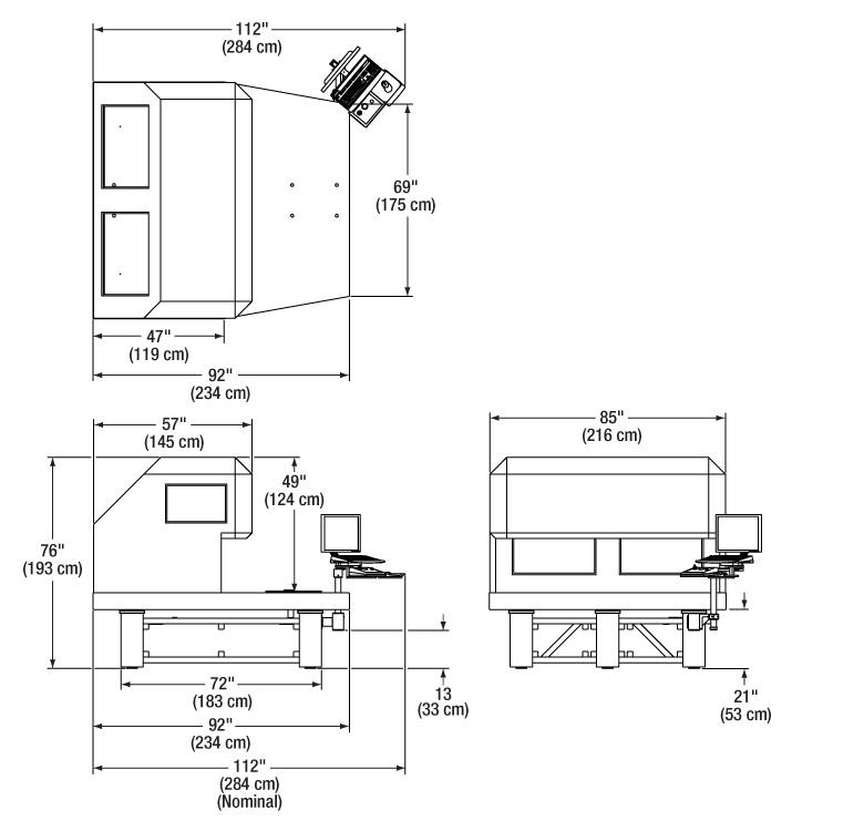 - 711 mm x 610 mm x 200 mm (エアーまたはメカニカルベアリング)