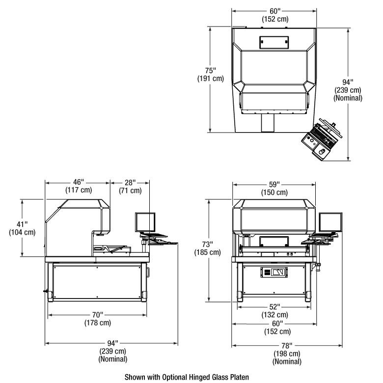 - Hinged Glass Platen or Pneumatic Hinged Glass Platan