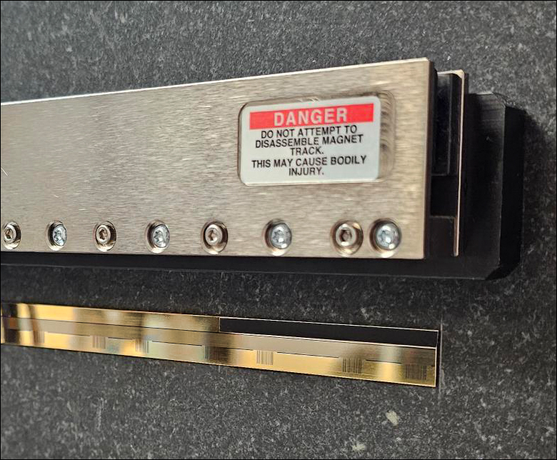 Figure 2.1 VSAシリーズの非接触型磁気トラック(上側)と金製の0.10 µmエンコーダ(下側)