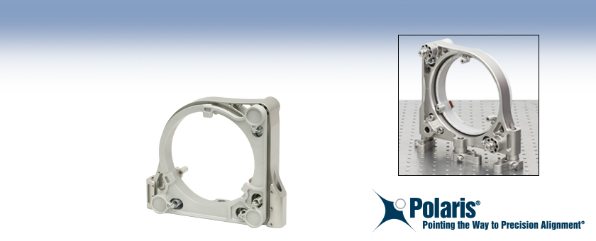 Polaris® Ø152.4 mm(Ø6インチ)光学素子用低歪みキネマティックミラーマウントは、マウントによる光学素子表面の歪みを低く抑えながら、長期的にビームポインティングの安定性が保たれる製品です。