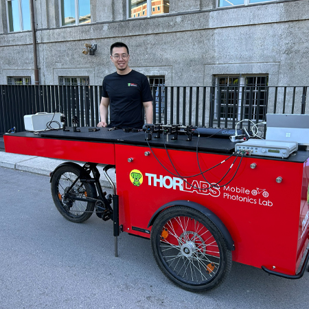 Figure 1.4 The bike is powered and staffed by Thorlabs team members from around Europe.