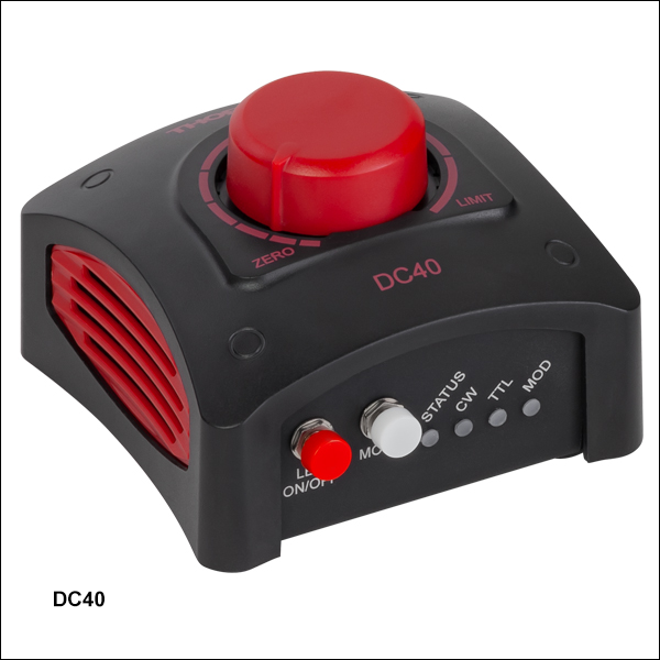 LEDドライバDC40には15.0 VDCの電源 (型番DSH15、国内用電源ケーブルを含む)が付属します。交換用電源も別途ご用意しています(下記参照)。このドライバの付属品の一覧は「発送品リスト」タブでご覧いただけます。