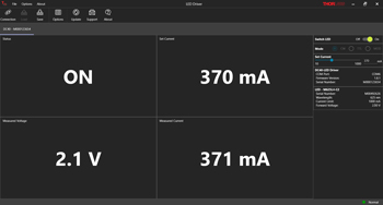 Screenshot Showing the DC40 LED Driver Software GUI While Operating With a Thorlabs LED