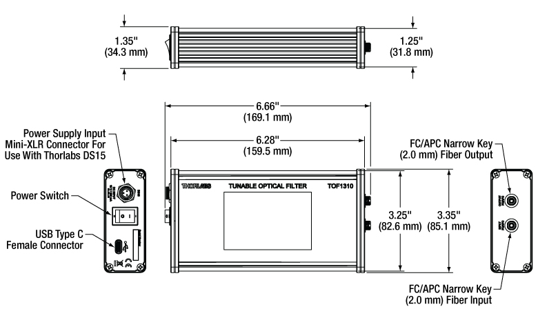 Figure 2.1 チューナブルバンドパスフィルタTOFシリーズの図面
