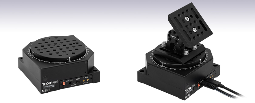 The MTRS(/M) Motorized Tilt and Rotation Stage features two DC servo motors and an integrated DC controller. The controller includes a USB-C port that can be connected to a PC. Coupling this with the user-friendly Kinesis software allows plug and play operation, with advanced custom motion control applications and sequences also possible using the extensive programming environment supplied. This programming library is compatible with many development tools such as LabVIEW, Visual Basic, Visual C++, C++ Builder, LabWindows/CVI, MATLAB, and Delphi.