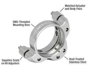 - 厚さ12.7 mmまでのØ50.8 mm(Ø2インチ)光学素子a、またはSM2シリーズの部品用に設計