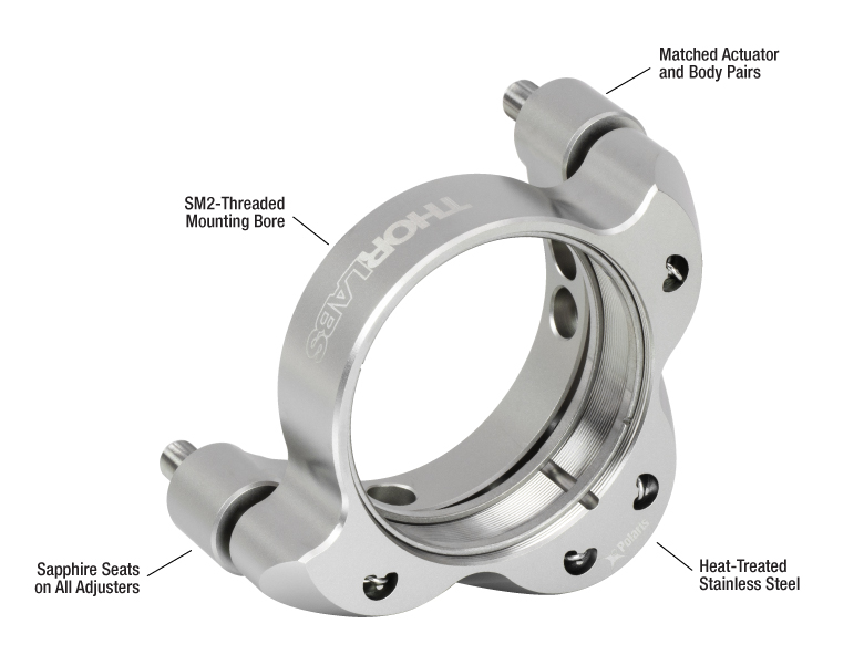 SM2ネジホールドタイプのPolaris®ミラーマウントは、長期安定性を厳しく求められる用途にお勧めします。