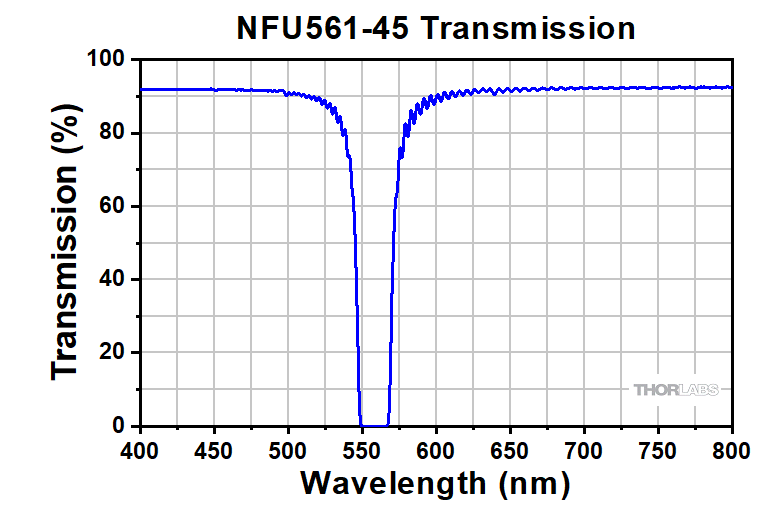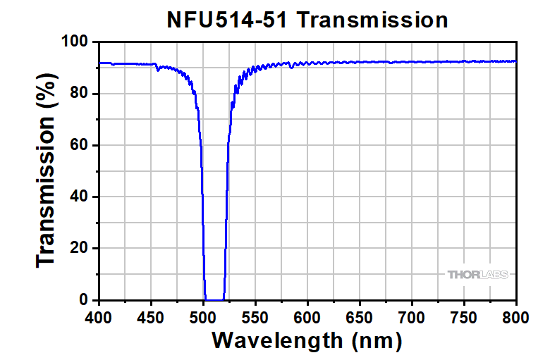 Please note: All measured data presented is an example of the performance of our notch filters. Performance will vary from filter to filter, especially at off-axis angles of incidence. Plots of transmission and optical density for all filters may be found in the Transmission Graphs and OD Graphs tabs respectively.