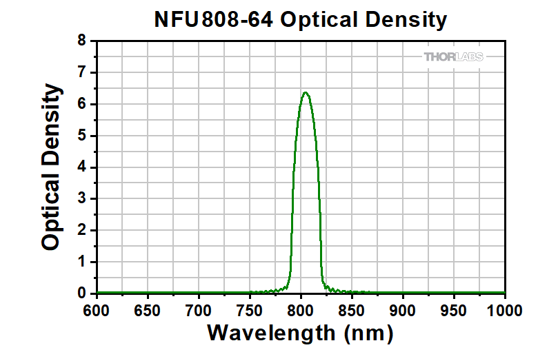 The plots below detail the optical density in the blocking region of our ultra-thin notch filters. Please note that the measured data presented is typical, and performance may vary from lot to lot, especially outside of the specified wavelength range of each filter.