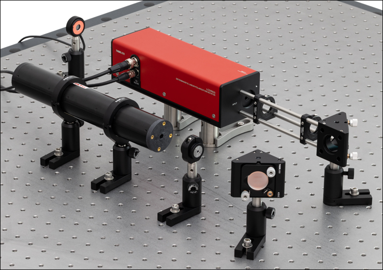Thorlabs' LCDR633 Liquid Crystal Deterministic Rotator (LCDR), controlled by the KLC101 Liquid Crystal Controller, can continuously rotate the polarization state of an arbitrary linearly polarized input beam through over 360° with no mechanical movement involved. An internal closed-loop feedback mechanism analyzes the output beam and adjusts the driving voltage of the liquid crystal retarder to stabilize the output azimuth (as illustrated in Figure 1.2).