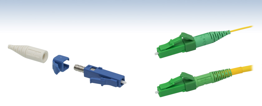 LC®*/PCコネクタ(Lucent Connector(ルーセントコネクタ) / Physical Contact)およびLC/APC (Lucent Connector / Angled Physical Contact)は、より小さく使いやすい光ファイバーコネクタへのニーズを満たすために開発されました。これらのコネクタは、SC/PCコネクタに比べ、パネル上で必要となるスペースを50%節減します。