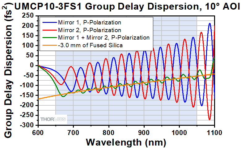 | Group Delay Dispersion (GDD) | -54 fs2 at 800 nm per Mirror | -108 fs2 at 800 nm per Mirror Pair | -175 fs2 at 800 nm per Mirror | |