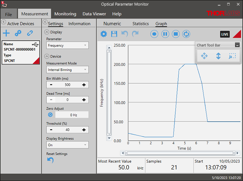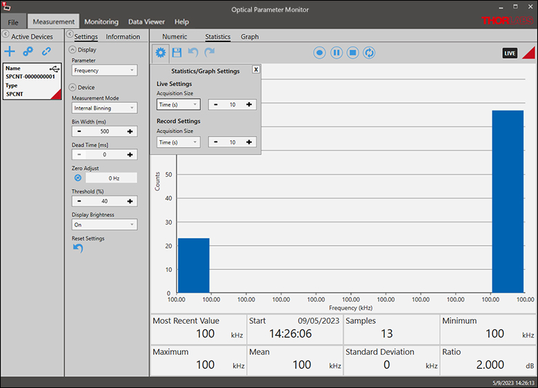 シングルフォトンカウンターモジュールにはGUIを含むソフトウェアが付属しているため、ご購入後すぐにお使いいただけます。ソフトウェアを用いて、次の動作モードが設定できます。
