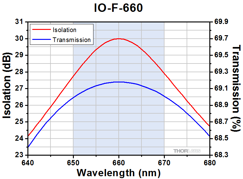 可視域用ファイバーアイソレーター、SMファイバー付き(650~670 nm)
