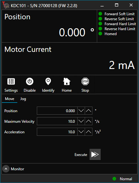 Motion Control SoftwareAn updated EEPROM in motion control stages sold starting in early 2022 necessitates a controller firmware upgrade. If you receive an "unknown stage" or "phasing error" message, please update your Kinesis software to the latest version, and use the firmware update utility available separately for download in the Firmware tab. Thorlabs offers two platforms to drive our wide range of motion controllers: our XA software package and our Kinesis software package, which is being phased out. The Kinesis software supports most of Thorlabs' motion control products. Please refer to your device's manual for Kinesis software compatibility. The XA software is an improved platform for developers that currently supports some of our most popular motion control products (see the full list of supported products here). Both the Kinesis and XA software packages feature .NET controls which can be used by 3rd party developers working in the latest C#, Visual Basic, LabVIEW, or any .NET compatible languages to create custom applications. Low-level DLL libraries are included for applications not expected to use the .NET framework, and APIs are included with each install. The Kinesis software includes a Central Sequence Manager that supports integration and synchronization of all Thorlabs motion control hardware and a simulator is included to assist in developing applications without requiring hardware. Guides to using our Kinesis software package with LabVIEW can be found here. XA developer guides, code examples, and API documentation can be found in the XA software development kit (SDK). Full API documentation for XA is provided for the native C library. The .NET wrapper documentation is currently under development. Please contact Tech Support for more details on using the .NET wrapper. Note: While select products are still capable of running the legacy APT™ software package, this platform is no longer fully supported. Information on software compatibility can be found in the product documentation, and additional details about the APT software can be found here.