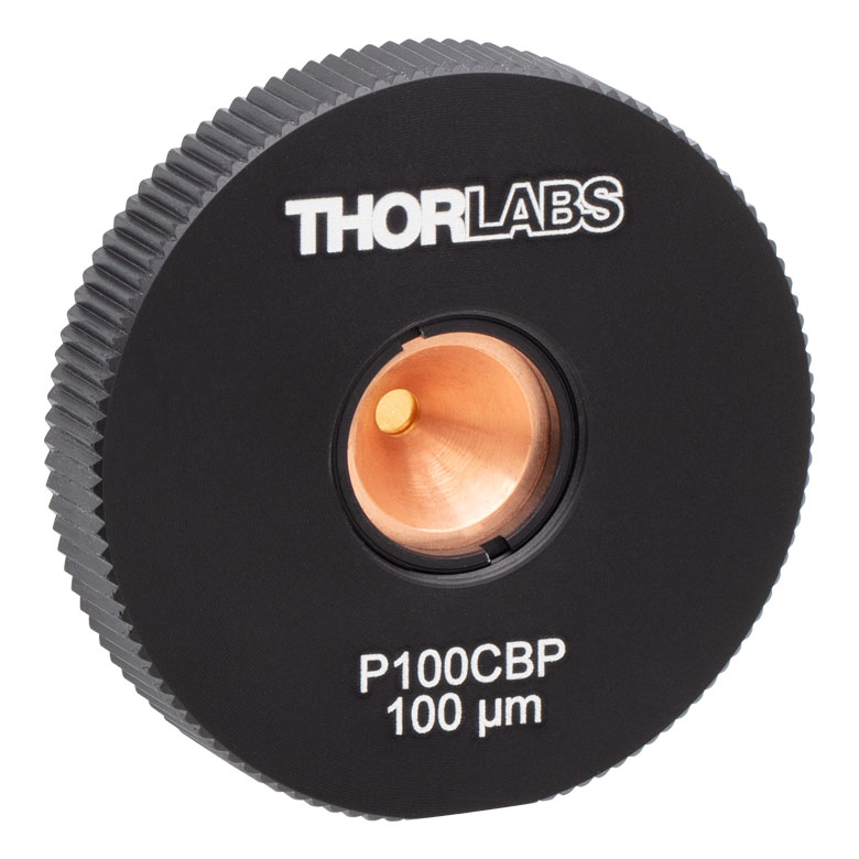 | P100CBP - 金メッキ付き銅製ピンホール、ピンホール径100 ± 4 µm、高パワー光対応SM1ネジ付きマウント、#8-32タップ穴(インチ規格) | |||||||||||||||||||||||||||||||||||||||