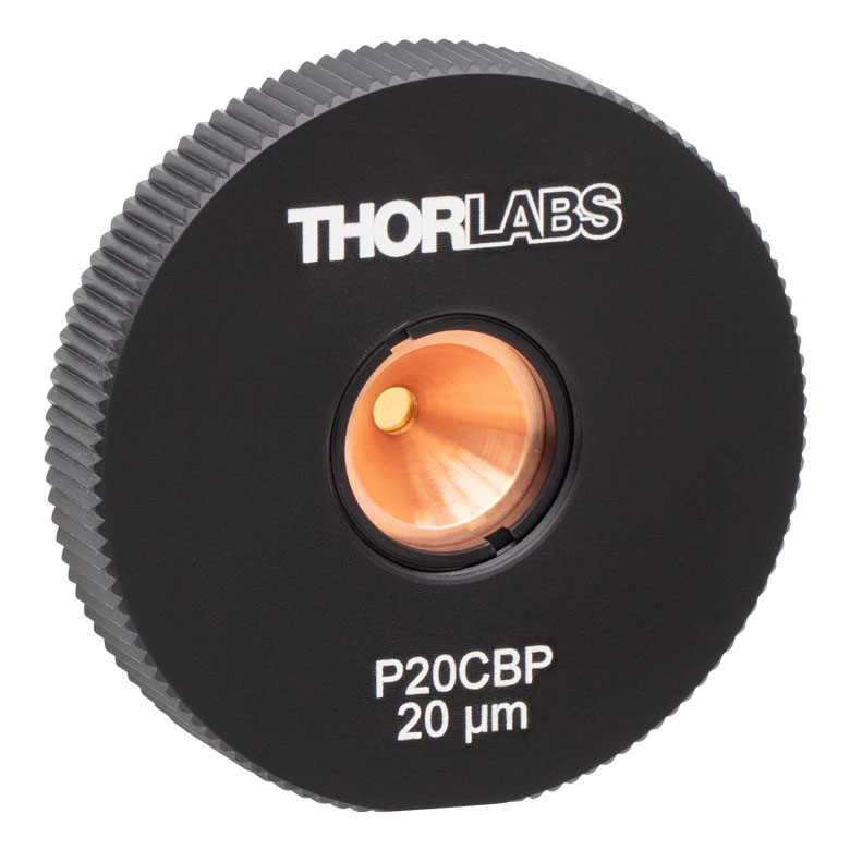 | P20CBP - 金メッキ付き銅製ピンホール、ピンホール径20 ± 2 µm、高パワー光対応SM1ネジ付きマウント、#8-32タップ穴(インチ規格) | |||||||||||||||||||||||||||||||||||||||
